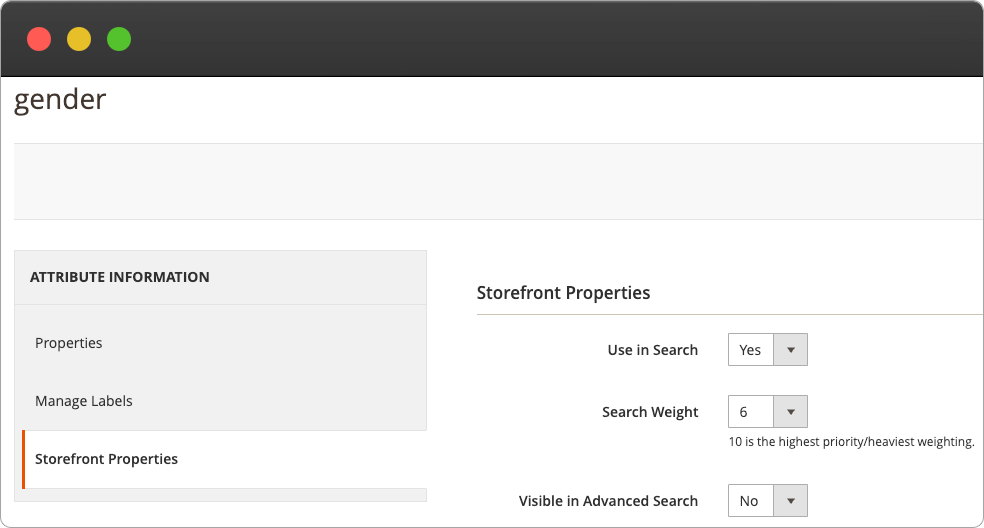 Uses Magento 2’s built-in attribute weight configuration for search relevance.