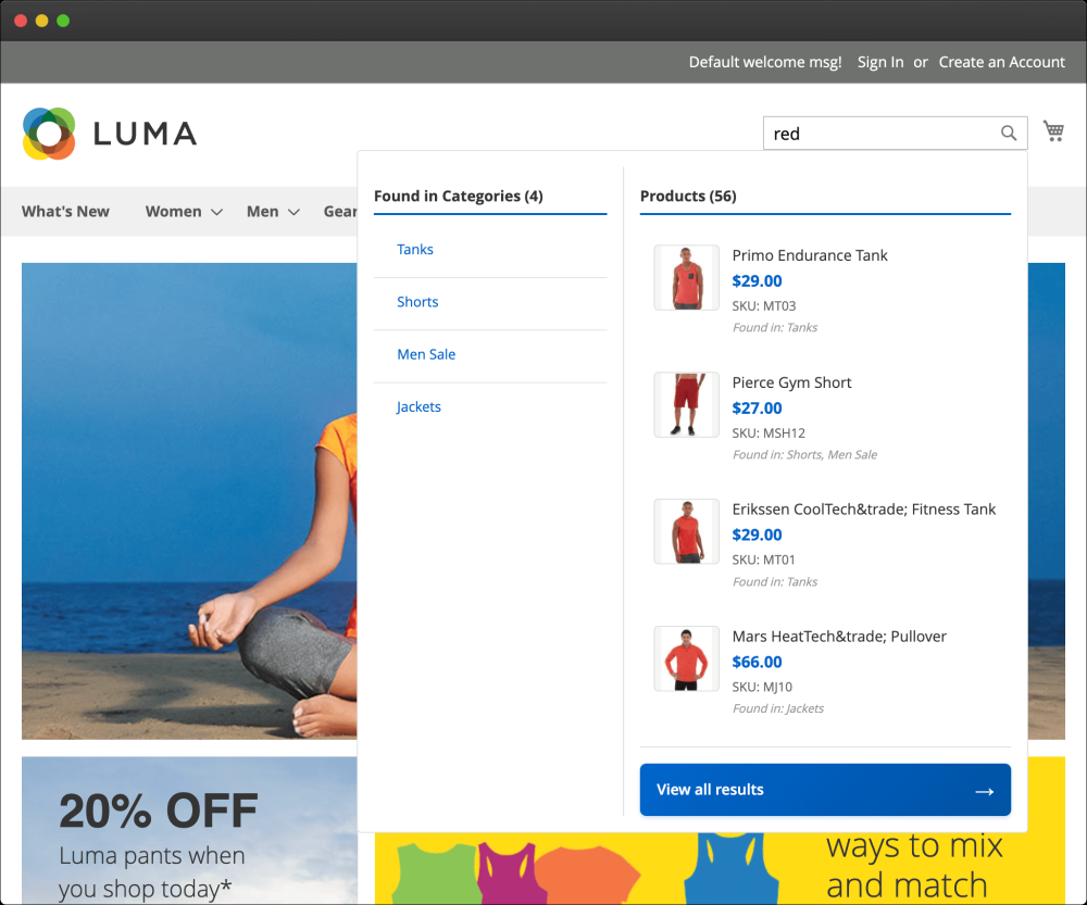 Magento 2 Elasticsearch Autocomplete and Product Suggestion extension enhances Magento's mini search by displaying instant product suggestions as you type. It also displays search suggestions and category suggestions.