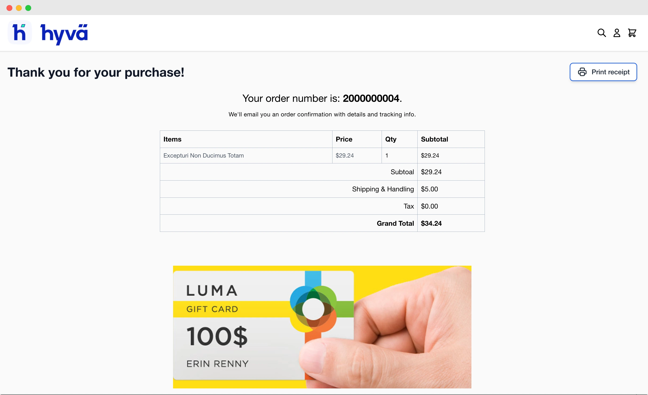 - Module displays order notes, item details, and order totals seamlessly in the Hyvä theme.